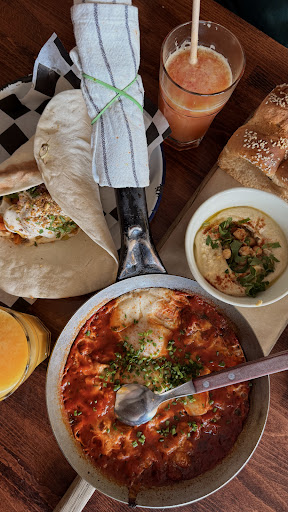It’s been a long time since I’ve had such an enjoyable dining experience! 🍽️✨ I visited this place with my friend. We originally planned to come for breakfast, but since we arrived around 2 PM, it turned into more of a lunch experience — and it was totally worth it! We ordered the chef’s special Wrap, and honestly, we loved it! Every single bite brought a different flavor; it felt like each piece told its own little story. The combination of such diverse ingredients created an amazing harmony that truly impressed me. The shakshuka we ordered on the side was also delicious (a bit heavy).