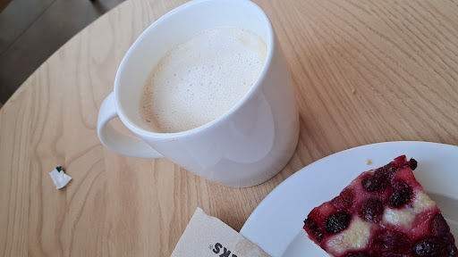 Starbucks is Starbucks, at least as far as the coffee is concerned. I enjoyed the coffee I had, though fans of drip coffee might want to consider that this is not popular here, and therefore there were not the options you might expect if you are used to Starbucks in the USA. The bakery and sandwich options are, I’m assuming, locally sourced and are far better than what you can get in the US. Since this location is in the city center, they have lots of the “you are here” collection mugs for purchase: Poland, Warsaw, Krakow. The upstairs area has plentiful tables, benches, chairs, and lounge chairs for conversations or working. WiFi is complimentary without have to ask for a password. And bonus - there’s a nice view of the Palace of Culture from the upstairs area. For the pandemic, they are sanitizing they tables between use and have placards to show you if your seat is clean or not. Very...