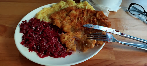 Read moreNie mam pojęcia, skąd taka liczba dobrych opinii. Jedzenie to jakaś porażka, pierwszy i ostatni raz tam jadłam. Pomidorowa składa się z passaty i pół kilo cukru. No i chyba trochę oleju wlewają, żeby było wrażenie, że to oczka z bulionu. Drugie danie - ziemniaki rozgotowane, spływające spomiędzy zębów widelca. Surówki (podobno dwie, wyglądały jak jedna) zupełnie bez smaku. Schab z pieca to konkretny kapeć, zrobiłam dużo lepszy x lat temu nie wiedząc do końca, co robię. Suche mięso, jakby było pieczone kilka dni temu i odgrzewany kilkanaście razy. Karmelizowana cebula gryzła się z całą resztą i robiłam wszystko, żeby ją tylko usunąć z talerza. Mąż mówi, że z tego wszystkiego najlepszy był kompot. Mąż nie przepada za kompotami. Do tego wszystkiego biegające, niepilnowane bombelki rzucające sztućcami i potykające się o moje nogi. Jedna matka takiego bombelka zachwalała jedzenie - zakładam, że kuchnię w domu ma tylko dla ozdoby i nie zna...