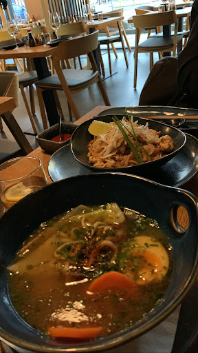 About the food, well, we ordered dumplings as are appetizer, and of course you can never mess up the dumplings so wouldn't talk much about that, but we ordered ramen and pad thai. I would say the ramen was a bit oily flavor. The broth was nice but the added sesame oil or some sort of oil was added a bit much to ruin the actual flavor of the broth. Then for pad thai, it was nice but the noodles were too over cooked.