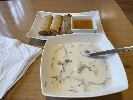Read moreMam bardzo mieszane uczucia co do tego miejsca. Ogólnie dam im jeszcze jedna szanse i zamówię więcej dań aby sobie wyrobić zdanie już raz na zawsze. Sajgonki w ich wydaniu są jedne z najgorszych jakie jadłem. Zupa tom Kha była zdecydowanie lepsza i tu bardziej czułem Tajlandię. Budynek w środku jak i na zewnątrz nie wyglada zbyt zachęcająco. Wszędzie jest bałagan i pajęczyny, jeśli lokal tak wyglada to w kuchni na pewno nie jest lepiej.