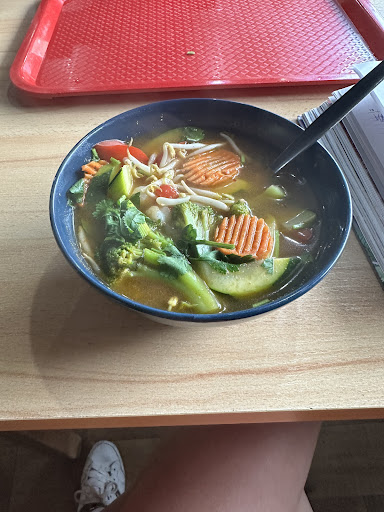 Read moreSama restauracja to typowy chińczyk/vietnamczyk te same sosy, podobne menu, wystrój też raczej standard, teraz co raz częściej wchodzą dania tajskie więc i tu ich nie zabrakło. Niestety zamówione czerwone curry z największą ilością papryczek przy nazwie oznaczających maksymalny poziom ostrości było łagodnie pikantne, nie za bardzo aromatyczne, nie ostre. Czerwone curry jest czerwone z powodu obłędnej ilości czerwonych papryczek chilli, imbiru, czosnku i trawy cytrynowej, czegoś co gdzieś majaczyło na kubkach smakowych ale było za nieśmiałe by się pokazać. Rozumiem tonowanie potraw gdyż nie doświadczone polskie gardełka mogły by się poparzyć taką ilością ostrego ale niech to przynajmniej ma smak i aromat. Niestety zawiodłem się, i nie najadłem, porcja zupy ok ale porcja ryżu jakaś nie wystarczająca, a to tylko ryż, dlaczego dawać go mniej? Cena niższa niż w innych restauracjach no ale jakim kosztem... Kurczak hoisin jest bardziej atrakcyjną potrawą, smaczna w swojej prostocie, świeże warzywa przesmażone z cienko pokrojonym kurczakiem, sos hoisin pewnie z makro bo nie tak aromatyczny jak te z balalarskiej, sos sojowy i czosnek i jest ok, znowu jakaś taka mała...
