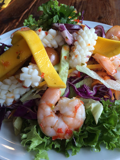 Sitting outside, the veranda is not very cozy and quite cramped. The chairs and tables really resemble a Thai restaurant, everything is as ascetic as it is, except that the flowers on the veranda made us happy. The food was terrible, we ordered tom yam, chicken curry and tea in a teapot. The curry was not bad, but the menu does not say that it is a soup. They added too much curry to it, which made it impossible to finish it and the flavor got nasty towards the end Tom yam is a separate "art", I don't know what the chef was inspired by, but a soup with two kinds of pasta and minced meat cannot be called tom yam. Don't show it to Thais, they'll have a heart attack. I wanted a good meal and they ordered this horror. Tea was tasty, but the kettle is not big enough, when the food is tasty, you want to sit at a table and slowly drink tea, here there is no such thing. The waiter didn't specify whether we liked everything, but in general the service was pleasant, the food was...
