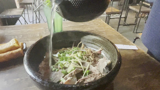 Vietnamka's cozy and modern interior design immediately caught my attention, with its cool decor adding to the ambiance. Although their opening hours were from 12 to 10, I couldn't help but wonder if the kitchen had already started preparing their rich beef soup from the early hours of the morning. It was clear that the food was prepared with utmost care, as the friendly waiters brought out the hot soup right in front of us, creating a perfect balance of taste and temperature that elevated the Pho to an exceptional level. In fact, I dare say that it was the best Pho I have ever tasted in Europe, surpassing even the quality of those served in Asia.