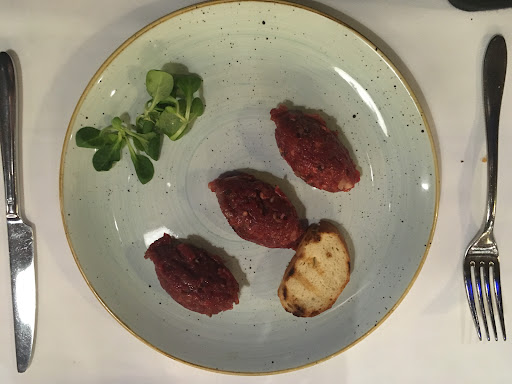 I ordered the beef tartare as a starter, it was 40 pl and it was okay. Definitely not the best tartare I've had but it wasn't terrible. I had to add salt, and it was still fairly bland afterward. My friend ordered the grilled octopus to start, which was around 50pl I think, and it was really good! I wished I'd ordered that. I would not recommend the tartare.