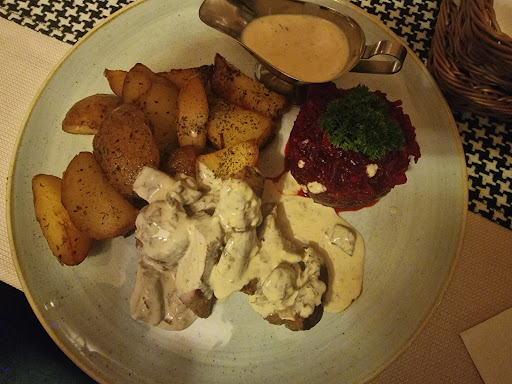 Als Starter hab ich diese mit Slivovice flambierte Leber mit Rucola, Äpfel und anderen Zutaten bestellt - TOP! Wirklich ein fantastischer Geschmack und eine sehr gute Qualität! Als Hauptgang wählte ich den Salat mit der Putenbrust, was für ein Salat! Auch echt erstklassig und Highlevel. Die müssen echt ein Super Personal in der Küche haben, die was vom Kochen und von der Zubereitung verstehen! Da merkt man, die verstehen es zu kochen! Natürlich darf man auch die sehr nette Kellnerin nicht vergessen, die zu jeder Zeit für uns da war und flott und sehr freundlich und alle Wünsche dir wir so zwischen dem Essen benötigten, uns von den Augen abgelesen hat.