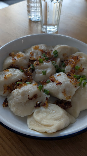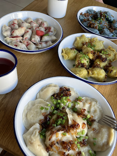I am a tourist visiting this city and restaurant for the first time and I absolutely recommend this place. If you want traditional pierogi with unique stuffing come here. We loved the traditional Ruskie but I loved the chicken liver and cranberry. We had to use Google translate since the people here don't speak much English but it was awesome!! They tried to help us order the right things!! Super clean place as...