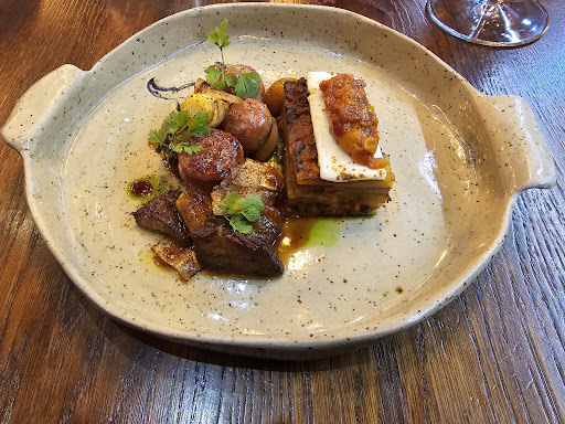 We sat for over 4 hours and had a vast selection of different dishes including, Fillet of Beef, Duck, Iberico Pork, Scallops, Pork Cheeks and much more. Each dish was crafted with so much skill and included many different elements which worked really well together. We were fortunate to be able to sit at the kitchen bench and oversea the amount of work that went in to every dish. Each dish was served by the chefs and explained at the table. We enjoyed every single dish we were served. We tried a selection of good wines across the evening also.