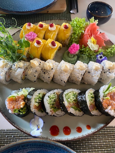 Już na wejściu lokal nie robi wrażenia - ciemna, maleńka klitka z kiczowatymi malunkami na ścianie i odmóżdżającą muzyką, która może by i pasowała do klubu, ale w żadnym wypadku nie do restauracji (baru?) tego typu. Następna sprawa to zupełnie bezsensownie przemyślane stoły, na których nic się nie mieści i krzesła, które też szczególnie pojemne nie są. Zastawa stołu również nie oddaje klimatu. Tak samo mały czajniczek i wielka filiżanka oraz sama herbata. Następny mankament to rolety albo raczej ich brak - ściana lokalu znajduje się od strony południowo-zachodniej, więc słońce zaczyna wpadać przez okno w okolicach południa i męczy przez całą porę obiadową, oślepiając i prażąc skórę. Jest się więc skazanym na jedzenie w ciemnościach w miejscach, gdzie słońce akurat nie świeci (co jest raczej niewykonalne w porach obiadowych przy tak małym lokalu i tak małej ilości stołów), albo na uporczywe roztapianie się w ostrym słońcu. Doskwiera to tym bardziej, że czas oczekiwania na jedzenie jest bardzo długi, bo najwidoczniej klienci na wynos mają pierwszeństwo… Wszystko to jednak dałoby się, jakkolwiek ciężko, znieść, gdyby samo jedzenie to wynagradzało, ale niestety w żaden sposób tak nie jest - ryż jest zupełnie bez smaku i nawet nie wygląda jak ryż do sushi, a nijaki środek wcale tego nie naprawia. Nie dajcie się zwieść lokalizacji - kiedyś była tu porządna restauracja z sushi, ramenem i elementami koreańskiej kuchni, a teraz to jakaś podrzędna sieciówka z podrzędnym jedzeniem, którego jakość jest zdecydowanie nieadekwatna do ceny. Jeśli ma się ochotę na mierne sushi to można kupić podobnie smakujące zestawy w biedronce, zaoszczędzić na czasie i pieniądzach, i w dodatku obyć się bez bólu głowy od durnej muzyki i bez spieczonej twarzy i pocenia się w ostrym słońcu… Nie polecam i nie pojawię się...