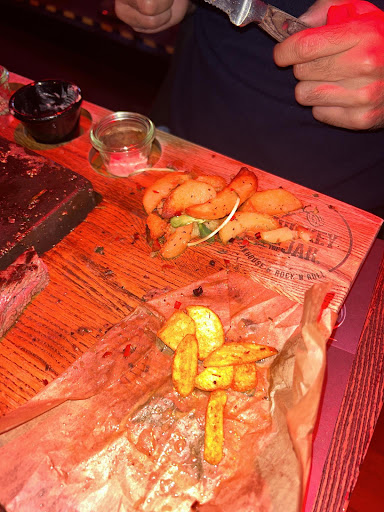 And now let's get to biggest disappointment and something so badly made that whoever did that should be ashamed. If that was me I wouldn't put in in my CV. It's not an achievement. It's a failure. Starting with knife that was pointing out from your food. It supposed look funky and nice and vibe and all that tik tok shi.... But it didn't do it. Yes there where peowusing forks and knifes to ate burgers but same people would use it to eat pizza. If you give any pressure to hold it it will collapse and just start floating. There's just too much sauces all over it. There's bun, meat (badly minced) and sauces. There migtbe some salad or anything else but I haven't noticed because I was so focused to keep it all together. And I was failing badly. It felt like I was trying to eat something that was dipped in burger sauces. If I would squeezed it more I could save enough sauce For dozen more burgers.
