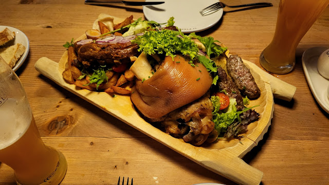 We ordered several dishes, including the pork knuckle. When it arrived, it looked pale, and upon cutting it, we found bloody spots inside. We asked the waiter if this was normal. He took the dish to the kitchen and returned with the same one, claiming everything was fine and that those spots were just fat. When we asked how to eat it, he said the pig was slaughtered at that spot, hence the bloody marks. He didn’t explain how to eat it. Even if you’re not ready to eat it, you’ll still be forced to pay.