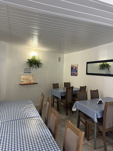 Czy to miejsce można określić jako bar mleczny lub serwujące domowe obiady? Moim zdaniem absolutnie nie. Samo użycie takich określeń w odniesieniu do tego lokalu jest krzywdzące dla prawdziwych barów mlecznych i dla polskiej kuchni domowej. Lokal położony jest blisko granicy, co tym bardziej budzi obawy, bo łatwo wyobrazić sobie turystów, którzy w dobrej wierze wchodzą tu, licząc na tradycyjne polskie smaki, a wychodzą z zupełnie odwrotnym wrażeniem. Takie doświadczenie może skutecznie zniechęcić ich do naszej kuchni. Pierwsze wrażenie pojawia się jeszcze zanim cokolwiek zobaczy się w menu. Już przy otwarciu drzwi uderza intensywny, ciężki zapach starego oleju do smażenia, który wręcz unosi się w powietrzu i osiada na ubraniach. To nie jest aromat świeżo przygotowywanego domowego obiadu, lecz woń wielokrotnie używanego tłuszczu, którego wymiana najwyraźniej nie należy tu do priorytetów.
