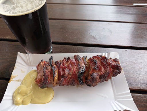 Read morePrzyszliśmy tutaj zachęceni bardzo dobrymi opiniami. Po całodziennym zwiedzaniu Drezna nie chciało nam się już szukać niczego innego dlatego zdecydowaliśmy się zjeść w pobliżu naszego apartamentu. Zamówiliśmy dla siebie szaszłyki z chlebem, ogórkami kiszonymi (trochę słabo przekiszone) a dla syna udko z kurczaka. Do tego oczywiście piwo - przepyszny czeski Rohozec. Jedzenie było naprawdę dobre. Szaszłyki świetnie wypieczone, spore porcje, które sprawiły, że wychodziliśmy stamtąd naprawdę najedzeni. Podobnie udko z kurczaka. Tak wiec do samego jedzenia nie mam żadnych uwag. Pani, która nas obsługiwała była uprzejma, może nie wylewna, ale szybko i profesjonalnie podała nam wszystkie zamówione produkty, potrafiła też doradzić w kwestii piwa. Zastrzeżenie mam tylko do formy podania dań. Papierowa tacka i plastikowe sztućce to jakiś żart. Rozumiem, że to grill, ale jedzenie w taki sposób to jakaś prowizorka, przecież zainwestowanie w kilka kompletów sztućców i talerzy to nie majątek. Muszę też powiedzieć, że wieczorami siedzenie w tym miejscu to ciągła walka z komarami, niestety z góry...