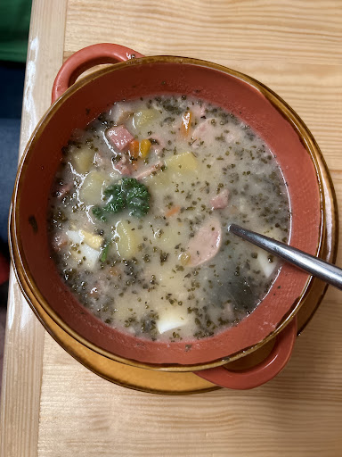 Jestem zawiedziona, zaskoczona i zdegustowana sytuacją która miała miejsce 23-grudnia 2021 roku. Jestem częstym gościem i zawsze jem tą samą potrawę- pierś z kaczki z zielonymi kluseczkami i kapustą. Doskonale więc wiem jak wygląda to danie wizualnie i ilościowo. To co otrzymałam 23-grudnia wbiło mnie w totalny szok- niemalże białe kluski, a mięso stanowiło może 1/3 a nawet 1/4 części mięsa która zawsze podawano. Na mój zszokowany komentarz dotyczący znikomej ilości mięsa i białych klusek- Pani chyba właścicielka oznajmiła że kluski są z pietruszka ale są białe bo zawsze dodają szpinak a tym razem NIE, a mięso hmm to zależy od wielkości kaczki 😂 i że porcja jest podana tak jak zawsze. ŻAŁUJĘ ŻE NIE ZROBIŁAM ZDJĘCIA! Ale byłam tak osłupiała z wrażenia że nie zadziałałam od razu!Zapłaciłam pełna kwotę za mniej niż pół porcji dania, niestety już tam nie pójdę. W moim odczuciu gość powinien przy składaniu zamówienia zostać poinformowany czy czegoś brakuje, czy coś jest zrobione inaczej, albo jak domyślam się w tym wypadku- poprostu przed wigilią Panie były zajęte realizacja zamówień świątecznych i na kuchni brakowało składników na dania z kart- to wszystko jestem w stanie zrozumieć! Ale nie rozumiem wpierania klientowi i wmawianie że nie ma...