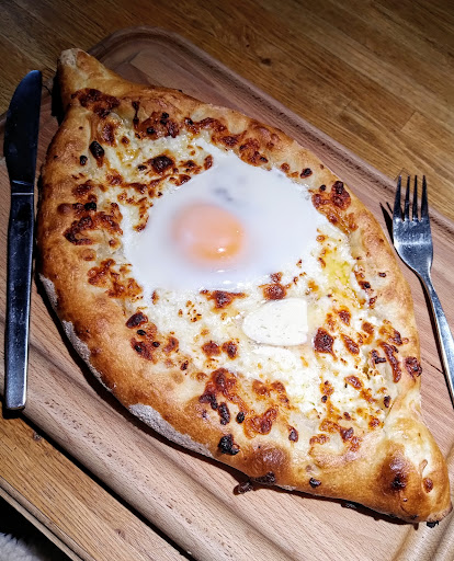 Read moreCame here just to have an adjarian khachapuri and absolutely loved it. It's definitely that type of food you get when you're very hungry and crave some comfort food. The softness of the dough was on another level and they also use sheep or goat cheese judging from it's characteristic salty taste. It can seem like a pricey dish, but it fills you up really well. We had to wait some time, around 30min, to get our order though. The place itself is quite cosy, but I didn't like at all that you need to look for the menu written on the walls, which is not really comfortable and the place inside is quite tiny for the amount of tables an seats, so you find yourself a little bit too close to other customers, which is...