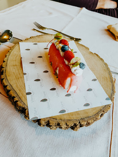 La guinda la puso el postre, un mármore 5amêndoas con sorbete de arándanos, ¡delicioso! Con su respectivo café (Nespresso) y un poco de chocolate y almendras.