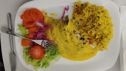 O local é muito bonito, mas o atendimento foi fraco e a comida também. Quando chegámos disseram-nos que teríamos de esperar pelo menos 45 minutos para comer, mas ninguém nos indicou uma das mesas vazias que faltava separar de outras. Simplesmente fomos ignoramos durante alguns minutos. Finalmente fomos chamados por uma senhora muito simpática que foi quem nos atendeu o resto do almoço. Tinham pão, mas não tinham nada para acompanhar o pão. Pedi o prato de salsichas(2) com ovos (2) e batatas e arroz (já que sou vegetariana e a minha intensão era nao comer as salsichas). Foi me explicado que o prato só trazia 1 salsicha e 1 ovo. Todos os pratos são 8 euros. Alguns têm marisco. Outros carne, etc. Não acho que o prato com 2 ovos e 2 salsichas estivesse caro para 8 euros comparado com os outros pratos do menu. Retirar 1 de cada é ainda mais descabido. Aquele prato não vale 8 euros e comparado com o prato de marisco que o senhor ao meu lado estava a comer então ainda faz menos sentido. Fiquei muito desiludida, foram 8 euros muito mal empregues... Um grande monte de arroz, um grande monte de batatas fritas 1 ovo estrelado e 1 salsicha