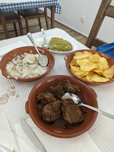 Read morePara dos personas pedimos el pollo Strogonoff y carrillera de cerdo estofada. La carrillera venía con una buena guarnición de patatas, ensalada y "migas de espárragos", una especie de amasado de pan con espárragos y ajo que estaba buenísimo. Lo que más nos gustó fue el pollo. Pedimos aceitunas, pan y agua. De postre dos cafés y una mousse de chocolate con nata y galleta. Todo eso por 33 euros (dos personas).
