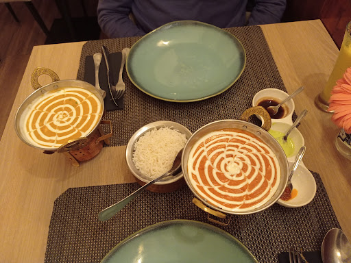 Read moreEverything about this restaurant is exceptional! The decor is so beautiful, and the ambiance so relaxing, with the lovely music in the background. And the service is excellent. The charming young lady who served us, spoke very good English (helpful to us) and was both friendly and efficient. Everyone else in the restaurant was very pleasant also. And the food was some of the best we have had anywhere! The pappadam with three sauces was very flavorful, and then came the garlic naan, which was so light and delicious. I ordered the Dal Makhani which was wonderful, and my husband got the Piro Tawa Fish, which was also delectable. We shared dishes, and the combination of the two was really good, especially with the spicy sauce that was brought to the table (I would have liked even more of that!) We ordered basmati, but we probably didn't need to, as we didn't end up eating it all (I think some must come with the Dal?) And the glass of red wine my husband ordered was excellent. Such high quality on every level, and with such reasonable prices. This...