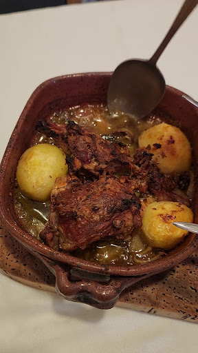 Read moreCozy place. All but one of the tables were filled. Good wines- reasonable prices. Had the bread, cheese, and tomato salad aa tapas. All were excellent. The shredded rabbit looked really good too. For dinner my wife had the veal tenderloin steak. Beautifully done. Tender and flavorful. I had the roasted baby goat. Large pieces of melt in your mouth braised kid with a wonderful sauce and potatoes that were cooked with it. Ate every bit even though it was a large portion. Main dishes came with rice, housemade potato chips, and puréed spinach. All were excellent. Stuck to a real simple dessert – fresh pineapple in a port sauce. €19 for a really nice local red wine. Cartuxa. Highly recommended – small so make your reservation. Great service....