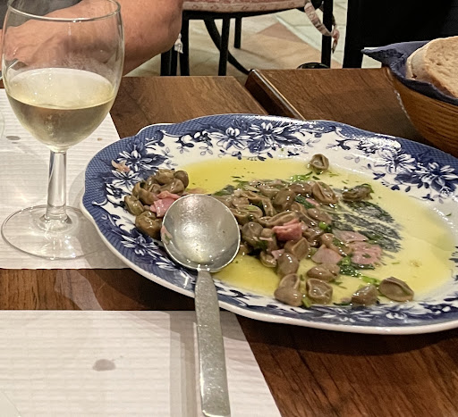 Read moreJá era tarde e por isso entramos aqui, porque fechava meia hora mais tarde que os outros sítios, mesmo tendo uma classificação baixa, e ainda teríamos uma hora para almoçar. Estava vazio (!) apenas havia numa mesa uma senhora que, pela conversa, só podia ser a dona. O cheiro a restaurante mal ventilado e mal higienizado deu-me logo um mau presságio, mas a fome era muita e as opções ao domingo em Évora às 14.30h eram escassas. NÃO PEÇAM AÇORDA ! Pedi uma açorda bacalhau, um prato alentejano, simples de fazer e habitualmente super saboroso, e foi a pior da minha vida ( os ingredientes, sem sabor vieram para a mesa para eu fazer a mistura....pareceu-me surreal, estando no Alentejo). Estava faminta ainda dei três colheradas mas o sabor era horrível. Custou 13 euros, mas nem de graça. A minha amiga pediu ensopado de borrego mas não teve melhor sorte. O empregado que mal falava português ou inglês, simulou que ela tinha apontado mal na carta, e trocou o prato e trouxe carne porco à alentejana que ela não tinha pedido (suponho que porque o ensopado demora mais a confeccionar). Foi o que me valeu pois acabei por partilhar com ela ( a carne estava dura mas comia-se). Sentimos que estavam com muita pressa para fechar de nos mandar embora e foi tudo muito desagradável e CARO....