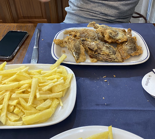 Read moreHemos comido en la terraza porque el salón estaba completamente lleno a las 12:30. Nos hemos pedido unas almejas y un arroz de marisco con bogavante, en la ración de almejas venían 9, las hemos contado. La salsa rica pero no vale los 17€ que cuesta la ración. Ahora el arroz espectacular, tenía muchísimo marisco y muchísimo sabor. Había más almejas en el arroz que en la ración que nos habían traído antes, si lo llegamos a saber no pedimos almejas. La relación calidad-precio del arroz espectacular. Hemos comido dos adultos y una niña por 72€, que si le quitas los 17€ de almejas serían 55€. El arroz para 2 personas da para comer 4, nosotros hemos tenido que dejarnos un poco porque hemos repetido 3 veces y seguía habiendo. Muy recomendable. Los pescados también tenían...