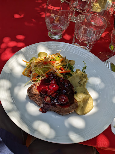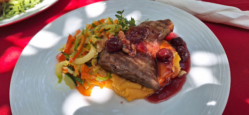 Read moreWe enjoyed a satisfying home cooked meal in a pleasant setting. The fish soup was flavored with a bit of curry, very thick and with lots of fish. The vegetable soup was comfort food, also a tasty broth with lots of veggies. The fish in almond crust was cooked to a perfect temperature. The beef tenderloin was a huge portion, also cooked to a perfect rare, presented with Obidos cherries, mashed potatoes, zucchini stuffed with spinach, and green beans. (Yep, a lot on the plate!). The bread had a nice crust with a soft center. A nice touch was little tables for your belongings or wine and water bottles. All in all...