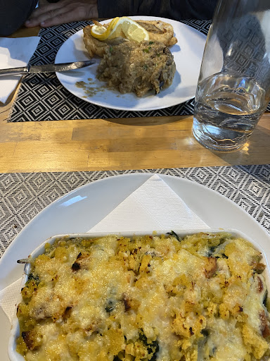 We found this family run place randomly on our way back from Obidos to Baleal - I’m so happy we did! We were made to feel welcome and had a great delicious dinner cooked which was so much better than the touristic offerings in Baleal. I had the fish bake - cod fish, potatoes, onion, greens, cheese and cornbread topping - so good! And massive portion. My partner had the white fish (Galo) which came with a delicious mushroom and bread side local to Portugal. We also had a Ginja Panacotta - sour cherry...
