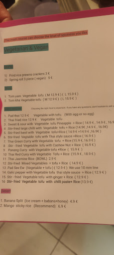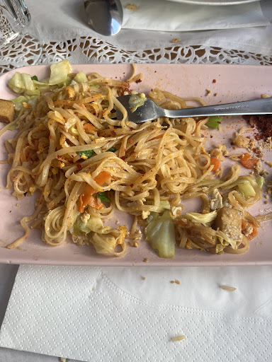 The food, while prepared well, was...a disappointment. Closest to "american thai" that we are used to that we've found in the Algarve, BUT, the portions are really small and pricey. I had shrimp pad thai with 2...count them, 2...small shrimps. The noodles, while flavorful, were barely warm and again, a small circle on the plate. Wish I had taken a picture. Husband had pork pad thai (medium) and he said the same thing. A few pieces of pork, overall dish was barely warm and wasn't very spicy. Both pad thai dishes were 12.90 euros.