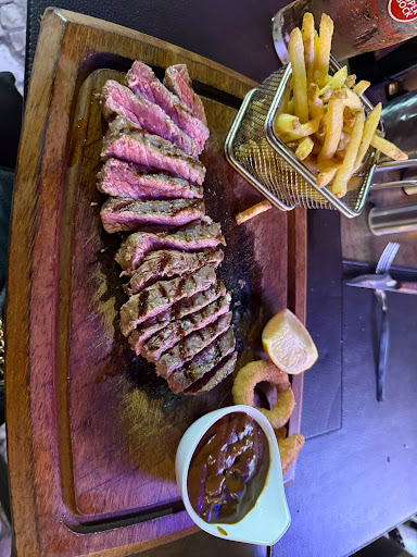 Read moreAfter a long day walking the coastline of Albufeira we settled in here for some evening sustenance. Amidst a plethora of other 'steakhouses' although admittedly given the time of year many were closed or under heavy renovations for the Summer, this place was busy when we started, large gas lamps gave a warmth to the otherwise chilly March evening on the Algarve. A good selection of food and drink and not as pricey as you might think given the location, certainly compared to others we had perused the menus of. A tad dissapointed that the Calamari looked like those frozen packet of Youngs we can buy at home, didn't seem fresh from the ocean and hand battered (not that it was advertised as such mind) given the proximity to the marina perhaps we had expected more. Steak was well cooked (not well done) and whilst we didn't partake of the alcoholic drinks there was a good...