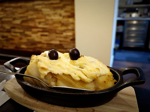 Read moreWe only had 5 days on holiday and had chosen another tapas bar to visit, however we visited a local bar and the owner was telling us how good this place was so managed to squeeze in lunch. This is, I’m told northern Portuguese, which I’d never tried, but had heard about the regional dish Francesinha and had been wanting to try but didn’t expect to find here, so off we went for lunch, it was a super hot day so the waiter seated us indoors as it was cooler. The service was friendly and welcoming, our waiter seemed genuinely happy to chat and recommend dishes but wasn’t pushy at all. We ordered the Francesinha to share, this came with skin on chips, we also ordered some fish croquettes and a salad. The food was amazing, the Francesinha was so tasty with lots of meat and the sauce was soooo moreish. The fish croquettes were very clearly homemade and tasty. I’m so glad we visited and wish we had time to go more hungry to try more food.
