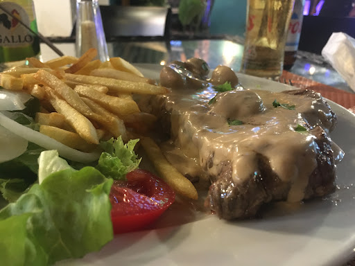 Read moreArrived late at night I was looking forward to a nice steak, I went to this place as the Steak house opposite had closed up for the night, just after 11pm. Staff were pleasant enough to have me seated and I ordered my drink. I perused their menu and could see they offered Steak alone or with sauces at a cost of 4 euros extra. Steak was 14 euros. I ordered it with mushroom cream sauce as a change to being on its own.