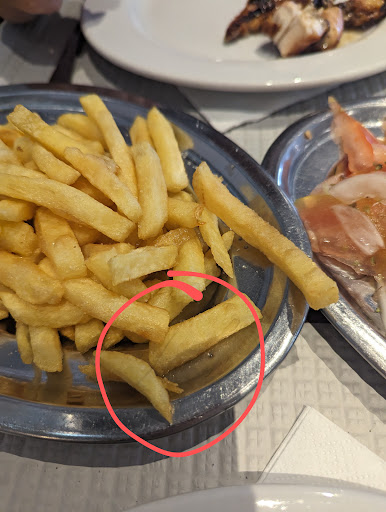We gave our orders then the wrong orders were placed on the table. When the right orders were we were given the SMALLEST portion of chicken and fries. We had to ask if the chicken has been starved to death because it definitely was not half a chicken that we ordered.