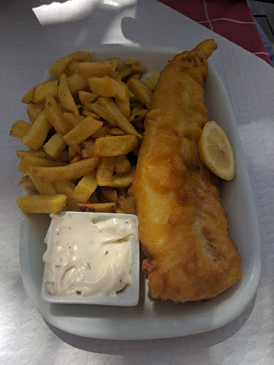 Ok. I have been meaning to come here for a LONG time and finally made the commitment today, Saturday. It is about 20 minutes from us so not too far, especially because we love REAL fish and chips. When we arrived it was exactly what we expected, a cut out bit on a busy British infested Algarvian high street, great! We found a table on the "terrace" and ordered what we came for, plaice and chips. We were informed that there was no plaice, would we like cod or haddock? No problem, bring the haddock. We waited nearly 35 minutes and just as we were getting a bit testy, BOOOOM, the fish and chips arrived. Hallelujah! IT WAS AWESOME!!! Exactly what we hoped for, big fish in authentic batter with home made, fresh cut chips, real malt vinegar and plenty of salt for shakin'! Having lived in England for many years I knew this was the real deal and was completely satisfied, even at 9 euros for the plate. WORTH IT! The best part though was when we requested the bill the server dude, "owner?", comped our cafe as an apology for not having plaice available. Yep, that is how you run a restaurant, subtle but detailed. We will be back. Getcha Some!!! Great product and...