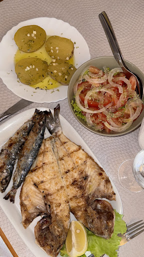 Read moreVandaag wezen eten met gezin. Vrijwel leeg, terwijl alles in de buurt uitverkocht was. Ligt aan een weg die doorgaand is met voldoende parkeerplaatsen (als het leeg is...). Waarom het zo leeg was? Geen flauw benul! Vis uitkiezen die zonder overdrijving fantastisch is bereid. Carapau en zeebaars. De gegrilde kip was mals, prima ook. De Ameijoas a bulhão Pato heerlijk maar als enige gerecht veel en veel te duur. Zonder deze twee voorgerechten (twee maal dus Ameijoas) waren we met drankjes de genoemde vis en de kip en een lekker sla-tomaat-ui-salade en vier drankjes 43 euro kwijt. Dan hebben we echt, ook voor Portugese begrippen, heerlijk gegeten. Dus nee: waarom het zo leeg was, snappen we echt niet. Toiletten zeer schoon, netjes met zelfs een bidet. Zie ik in Portugal, Spanje en Frankrijk helaas nog steeds te vaak wel eens anders. Zelf ben ik Portugees en kom al talloze jaren in mijn vaderland op vakantie, mijn oma kookte voor restaurants etcetc. Kortom: ik ben echt wel wat gewend. Zonde om te zien dat dit restaurant met erg aardige bediening welhaast zieltogend eruit zag zo zonder noemenswaardige gasten....