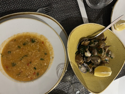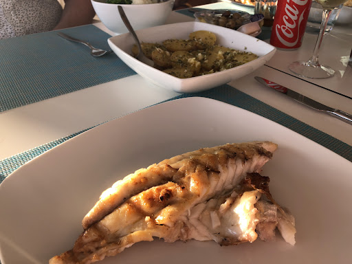 Read moreA beautiful location on the beach. Staff occasionally broke into a smile every now and then but were hard work. I really wanted to have fish as we were right next to the sea. Disappointed to be told turbot was only for 3 people, bass only for 2, etc. I didn’t want to choose shrimps as I was having those as a starter (which were delicious by the way) Fish charged by weight annoys me, I like to know how much my dinner is going to cost without having to ask how much is this and that...In the end my husband chose to eat fish so I could. We had golden bass and it was €45. Everything else was competitively priced. Again, I couldn’t even have a glass of vinho verde. The fish and accompanying garlic potatoes were delicious, veg which was extra was plain boiled broccoli and cauliflower. Desserts were good, I had the fig & carob cake. Total bill for 3 €111