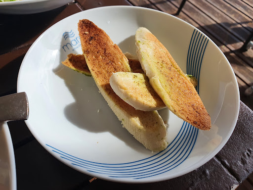 Read moreI'm in two minds when writing this review and assessing my rating. I have given four stars based on the overall package I.e. location, food / drinks that we'd ordered and standard of service; weighted appropriately. The location by the beach is great. The service was good. However the food / drink was overpriced but probably balanced by the premium location. We ordered the garlic prawns which came with a side of garlic toast; these were very good. We also ordered a large beer and a mango juice which were good, and a side of fries. Finally we had a caesar salad with additional chicken - this was disappointing because there was virtually no bacon, 5 thin slices of chicken and only 2 anchovies; so had we not order the additional chicken we would have literally just had salad! That being said the caesar salad was good but very overpriced at 20€ (16€ for the Caesar Salad and 4€ for the extra chicken). Finally we had some caramel gelato...