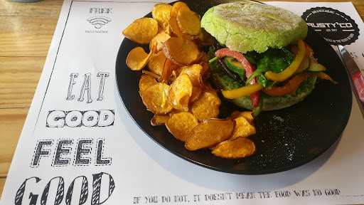 Iâve tried countless gourmet burger restaurants all around the world and Rustyâco is definitely up there between the top ones and they have unique and amazing flavour combinations and you can tell that the person who came up with these burger creations has a real passion for making quality burgers. You can even choose from so many different types of buns for your burger, very very few places do this. The meat is top top quality juicy and tender beef and all ingredients are quality and the flavours are perfectly balanced. We had both the regular fries and sweet potato fries and those were both perfectly crispy and tasty too. The restaurant is super clean and has a lovely minimalist rustic design which is really perfect for a burger place. On that note I have to mention they also had other tapas type of food on the menu but we havenât tried those. Service was also top class and very friendly so I can fully recommend that you stop at this place for some burgers if you are in town and want a little break from all the lovely seafood;) I wish I had taken some photos to upload but we were too hungry and only thought about it after I took a massive bite from my burger. 5 stars all around and by far the best burgers we had anywhere in southern Europe. My girlfriend whoâs from the Philippines is not a big burger fan and she usually eats very slowly but at Rustyâco she has finished her whole burger with all the fries in about 5 minutes. I think that...