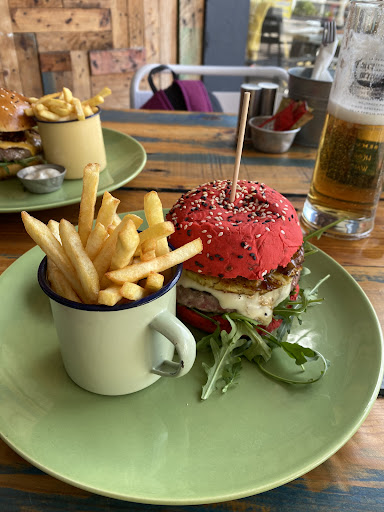 Read moreWhat an excellent dining experience! As a person who has been eating a vegan / vegetarian diet I've been struggling to find places to eat. Places that don't offer just omletes or chips. This place was great, not only was the food absolutely fantastic but the atmosphere and the service was amazing. The waitress, (unfortunately I didn't catch her name) was on top of her game from the get go, extremely attentive and very polite. She let us know there would be a wait as there was a large party at the next table. She apologized when something was not in supply from the menu and showed us extras that could go with our meal! I ordered the mushroom burger with a spinach bun and sweet potato fries - which was also explained to me that they were more like crisps. My friend ordered the cheeseburger without cheese and wasn't questioned when she asked when she said no cheese. The waitress also asked how well would she like the burger to be cooked. She gives her meal an A+ rating! There was no hassle when asked to split the bill - which is always a plus! We'll definitely have to think about returning if we have a chance...