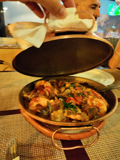 Read moreThe food is very good. The chicken, prawn and beef in the kebabs is amazing, moist and tender. We ate here twice during our stay. Second time we ate seafood rice and hubby had Olímpico Steak. My seafood rice is for 2 people. It could feed 3/4. We took a doggy bag home. There were fresh big prawns, shrimp, mussels, crab and clams. The flavour is unreal. These guys can cook. It is worth the walk from central Olhos de Água. The service is traditional and relaxed.... There is no rushing here.The cocktails cost about €5 (some cost more) and are AMAZING. The crowning glory is they have a swimming pool and baby pool for customers. We stayed after lunch to have more cocktails by the pool on sun loungers. What a fab...