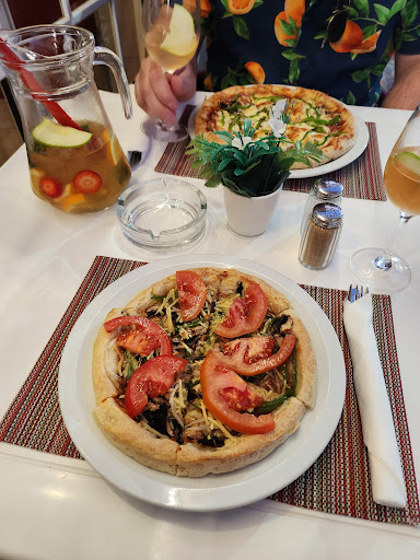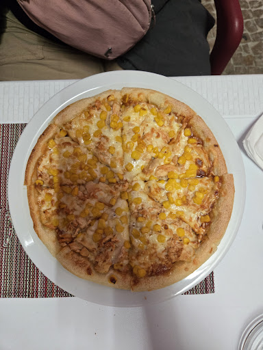 Read moreMy wife and I came here for a nice little date. I had the meatlovers and baby frog to drink: the meatlovers was really nice, the crust was crusty but not to the point where it would be a workout to bite through, just nice enough where you can hear the crunch. The baby frog was a really nice drink; my only regret is I finished it too fast! My wife had the tropical chicken pizza and tutti frutti drink. The pizza was very good, soft bottom was really nice, the drink was and I quote "👌" We also had shared between us french fries, cheesy garlic bread, and Portuguese bread: The french fries: altho it was not perfect, it had a suptle hint of salt but no other distinct flavour. The cheesy garlic bread: soft but crusty ends, similar to the Portuguese bread style however it didn't have as much taste as a Portuguese bread, but the garlic was perfect, not overpowering but enough to taste it's there. The Portuguese bread was like a fresh focaccia, the portoguese sausage really tied it together all in all I'd say you have to try it if you're here. The atmosphere; we sat outside, was not loud from the nearby pubs. They had a game from the portoguese league 2 and some not loud music playing, some lights to tie in the room. The tables are plastic, nothing wrong with that. The 5G connection here I would only say is bad so if you're here to be on your phone I'd suggest get offline games haha! The chairs are also plastic but the nice kind, my butt is not aching and I fit perfectly as a big guy. The staff is very friendly and nice, not too much nor too little, just perfect