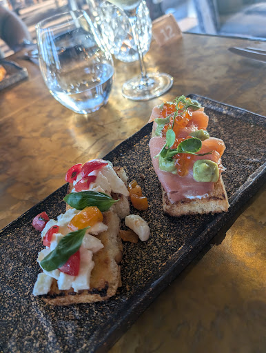 Read moreI understand the mixed comments, so I'm gonna make a detailed review concerning the food. Bruschettas : vegetarian was good, but in the salmon the cream cheese was too strong so we couldn't really taste much of the salmon and avocado. Main disches : risotto verde was good but some sand was in it. Tortelloni were good but lacked some acidity to balance the taste. Desserts were too sweets, be it the Pavlova or the meringued lemon tart (too much meringue in both) Overall, original and good but not up to the standards the restaurant sell itself and especially the price. An enjoyable experience...