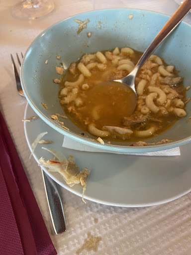 We loved the starters, the soup arrived shortly after which was a hit. Big pieces of fish with orzo noodles and a delicious light broth.