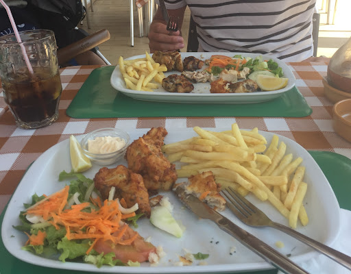 Read moreGreat find for lunch and surprisingly good menu. It was initially empty on arrival but don't let that put you off. We found a table outside in the shade with room for the pram with our 6month old in. Very friendly to us and our baby. We ordered so drinks, large 1 Coke and 1 Fanta. Little disappointing that the Fanta was flat, probably out of a large bottle but it was fine with ice and orange slices. I ordered the fried cod fillets €11.95 and my partner ordered the chicken kebab served with chilli oil €8.95. Both came with fries and a salad. The cod was large boneless meaty chunks fried in a light batter, beautifully cooked compared to some of the other places we have eaten in this area...