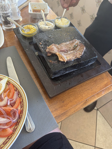 We unfortunately didn't have the best experience here. As we entered, we noted there were tables free, so it wasn't at capacity by any means. We ordered steak cooked on the stone, a chicken and prawn kebab, and 2 half piri piri chickens. It took just over an hour and a half for the food to come to us. Granted, it's known in all restaurants in Guia that if you don't have the chicken, it takes longer. But an hour and a half for steak which is cooked at the table by the person ordering, and a chicken and prawn kebab that doesn't take that long to cook, it's ridiculous. Especially when the restaurant isn't that busy. We noted other tables that came in after us got their food before us, and it wasn't all chicken orders, which was frustrating. The worst was that the chicken kebab had raw chicken bits, so it wasn't fully cooked. We were then given a bit of a sob story about how hard times are for the restaurant, which isn't fair to do to customers when you've not served them fairly. I've given 3 stars because they did give us a round of drinks on the house m, which was nice of them to do. Also, the steak on the stone and the piri piri chicken was very nice. The chips were tasty, too. Overall, though, we wouldn't come back here. Taking over an hour and a half to then serve part raw...