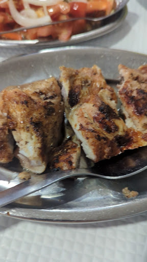Two people ordered 1/2 chicken each ( spicy and no spicy), shared tomato salad & bread. We didn't want to be too full. Normally we had the same size of portions plus fries at another restaurant but we couldn't finish. so we skipped fries this time. It was enough for two. We would prefer the spicy one. It wasn't too spicy so we both liked it.