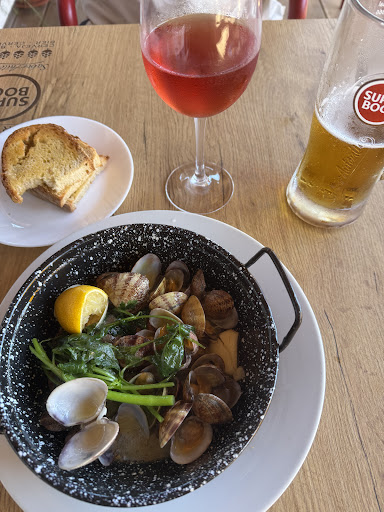Read moreAtendimento péssimo, como se nos estivesse a fazer um favor para estarmos ali, inclusive ouvimos da boca do que nos pareceu ser o dono do espaço “Que confusão de gente, nunca mais chega o final do mês”. Parece não precisar de clientes. Pedimos hambúrgueres angus com diferentes pontos da carne, insistimos várias vezes para o senhor apontar o ponto da carne ao qual ele ignorou e ainda se riu na nossa cara… Todas vieram bem passadas. As saladas eram boas, a bifana era péssima, o mesmo para as asinhas de frango. Tosta de frango razoável (se bem que por estar grávida pedi sem alface, veio com alface e só percebi na primeira dentada). Tínhamos pedido as asinhas e camarão ao alhinho para entradas, que chegaram ao mesmo tempo que o resto da comida… No fim pagámos a conta mais cara de três dias em Vilamoura, por sandes, saladas, hambúrgueres e tapas. Experiência a não repetir. Como é o único espaço na zona, aconselho vivamente a levar comida para a praia, pois o resto da envolvente é agradável e o parque de estacionamento é barato (2,50€...