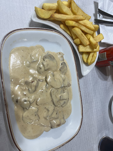 Read moreOrdered the pork filet with mushrooms. I asked if it came with vegetables and the waiter replied âChipsâ which should have been a warning. When it arrived, the meat was swimming in sauce, which was bland but did have plenty of mushrooms. Unfortunately the two pieces of pork filet submerged in the mushroom sauce needed a saw to cut through. I tried to persevere but gave up after three bites. I asked for the bill and the waiter asked âNo more?â I said I couldnât as the meat was too tough to cut. He then told me I should have ordered the chicken.