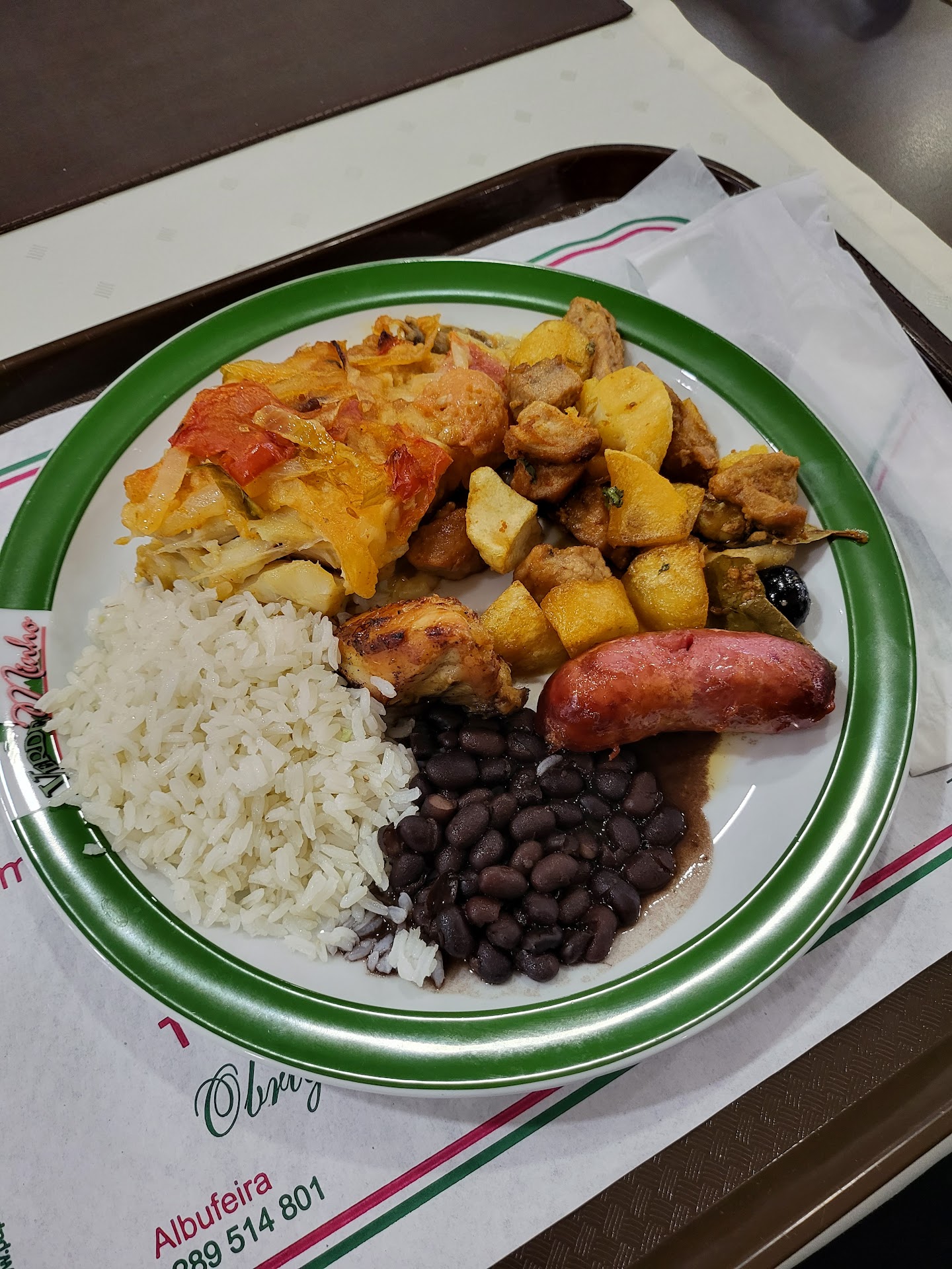 Wow...it's very clean...very big inside as you get in you think it's a buffet restaurant... But no you pay by the weight so make sure what ever goes on your plate you're going to eat. Great idea no waste of food. They have tables with all kind of salads, cheeses and fruits and then they have the hot tables with meats, fish, tapas (little sampler foods), pastas, pizas and traditional Portuguese dishes. Wines, beer water and so on ... when your food gets weighed they give you a card with a number you can go and get your food as many times you want like first your salad and cheeses and bread and then the main course just take the card with you they will keep on adding until you're done you only pay on your way out...the prices are amazing and you even can take out. Been there a few times and never...