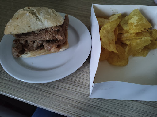 Read moreQue maravilha! Espaço tipicamente português que não cedeu ao estrangeiro nem um milímetro. Atendeu-me um senhor muito simpático que estava a ultimar umas coisas no bar e a minha pergunta se tinha bifanas respondeu "vou ver se há pão. Havendo pão há bifanas"❤️ Havia pão e as bifanas "já estâo quentinhas, alguém as acabou de fazer" (tão nosso) Uma das melhores bifanas que já comi, maravilhosamente bem servida, o pão fresquinho ainda estaladiço (eram cerca das 20h) bem saborosa (ia pedir mostarda mas depois cheirei a embalagem, pedi para levar) e ... baratissima €3,50 acompanha com batata pala pala. Enquanto esperei bebi uma ginginha, claro! Espaço castiço . Obrigatório se estiver...